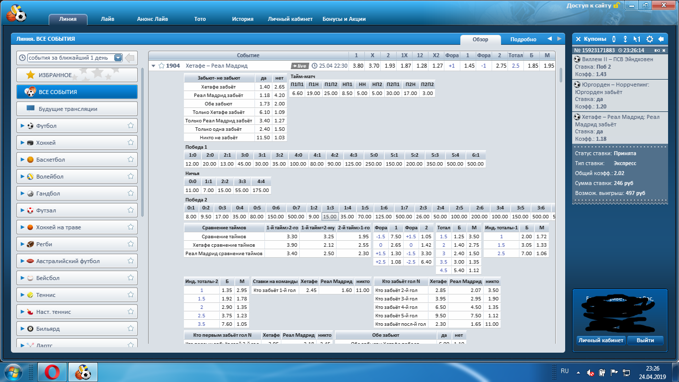 и ещё есть одна ситуация тут что не на все события дают много ставить это тоже будем учитывать…….