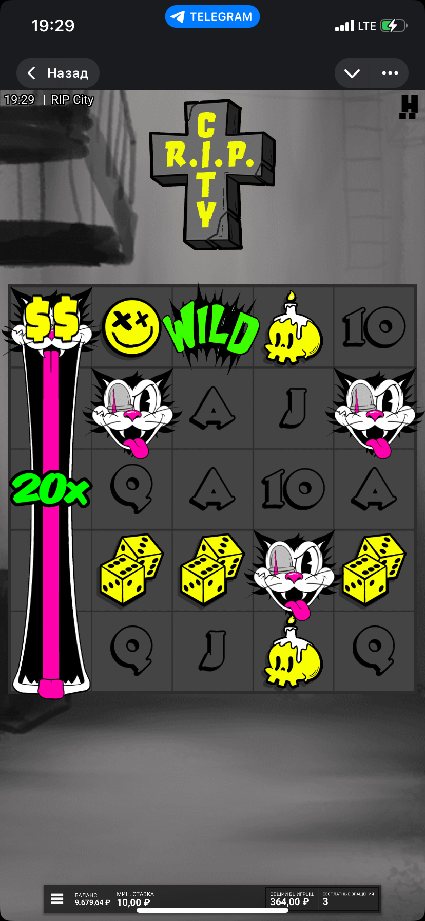 Опасный слот, можно быстро залиться, но иногда творит чудеса, чисто на покупных бонусах, с 10-ки дошёл до 550к
