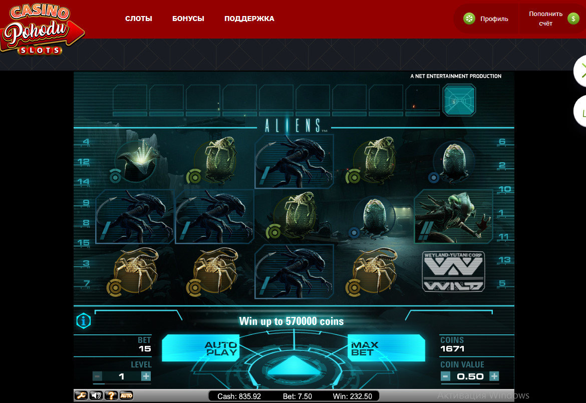 Так бы на свои вряд ли крутил барабаны в этом слоте… Зато вспомнил легендарный фильм «ЧУЖИЕ»