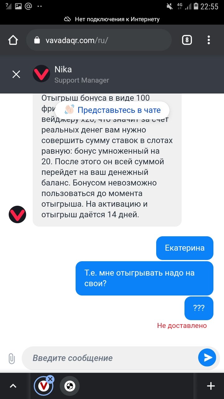 Одно время играл только в Ваваде еще до того как там появились промо-коды. Потом когда понял, что есть казино где за активность дают нормальные плюшки — пошел туда. Когда появились промо в Ваваде решил глянуть,а они все оказалось отбиваются за свои…тьфу(