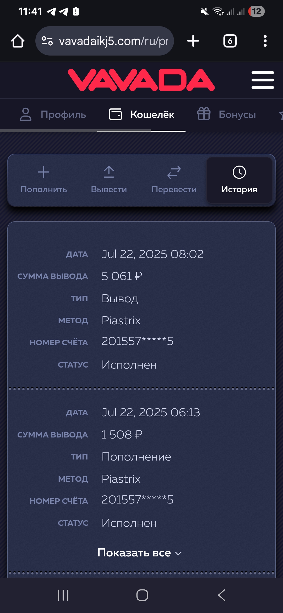 Решил попробовать ваваду, сделал депозит 550$, проиграл его, потом увидел бонус равный сумме депа и пошел раскуривать бонусками в прагмате , дало 700к рублей на бонусный баланс, отыграл х35, баланс стал 450к, поставил вывод в крипту, уже 12 часов не выводят, написал в саппорт, сказали аккаунт на рассмотрение. Стало тревожно, что за рассмотрение, проиграл-выиграл, пошел по чатам и мне посоветовали написать сюда жалобу, а я не понимаю пока к чему её писать, авось реально просто рассмотрят что все ок и выведут. Подскажите, как лучше поступить? Оформить сейчас или ждать решения и после него заполнить. Благодарю за ответ.