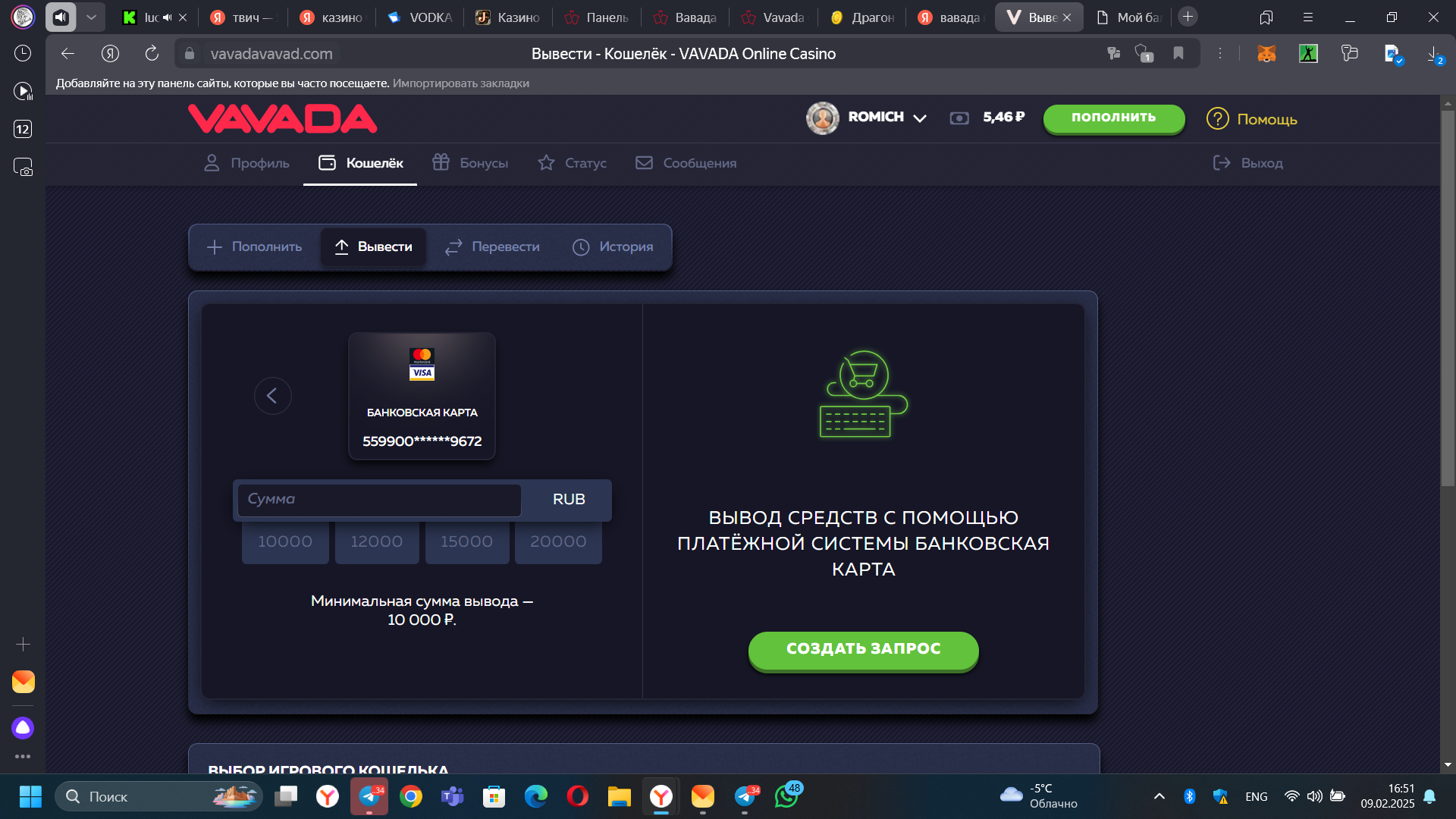 Минимальный вывод средств из казино Вавада на карты и по сбп стал 10.000 рублей. Те кто депает небольшие суммы и также выводит — лавочка прикрыта