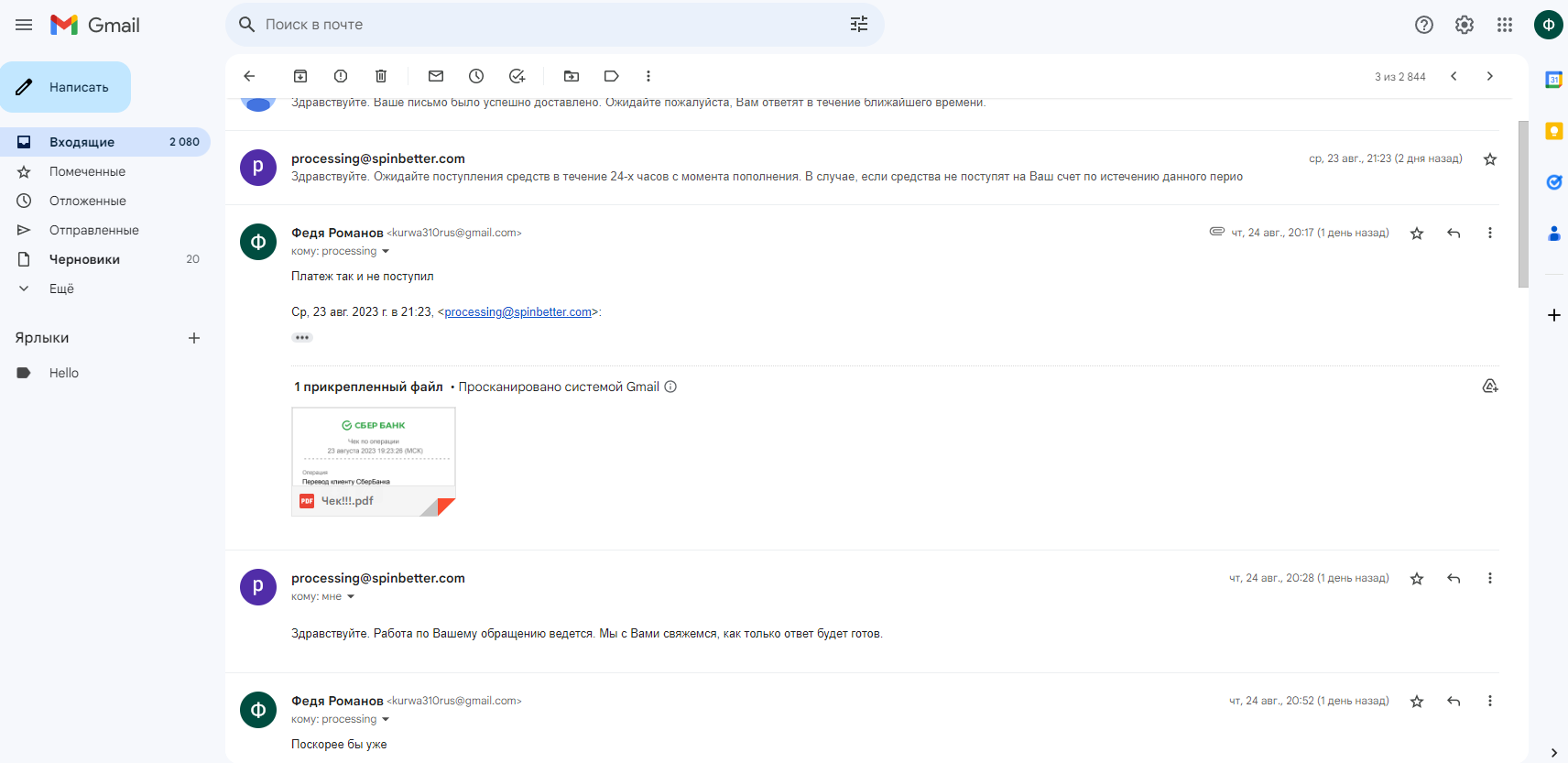 23/08/2023 внес депозит в размере 20.000 рублей, чтобы поиграть в слотах. Идут уже 3-е сутки, платеж до сих пор не зачислен, хотя во всех казино, что играл до этого с момента как я оплачивал и до момента начала игры проходило всего 2-3 минуты. Отправлял на почту [email protected] в течение этих дней: скриншоты перевода, справку ПДФ о переводе и даже банковскую выписку по карте со своими личными данными. Никаких конкретных сроков решения проблемы не называют, футболят. Не могу сказать наверняка, что не рекомендую связываться, но такой опыт у меня впервые. Не понимаю, что сложного в том, чтобы проверить поступление, с учетом того, что все доказательства я предоставил, а пытаться обмануть казино — самая тупая затея независимо от способа.![]()