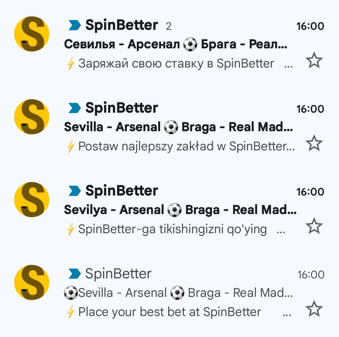 Spinbetter почините » кнопку» рассылки писем )