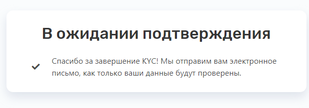 После проходим KYC вериф, ничего сложного просто светите ваше лицо на видео в течении 5-6 секунд и загружаете паспорт, после чего вам будет показано такого рода сообщение: