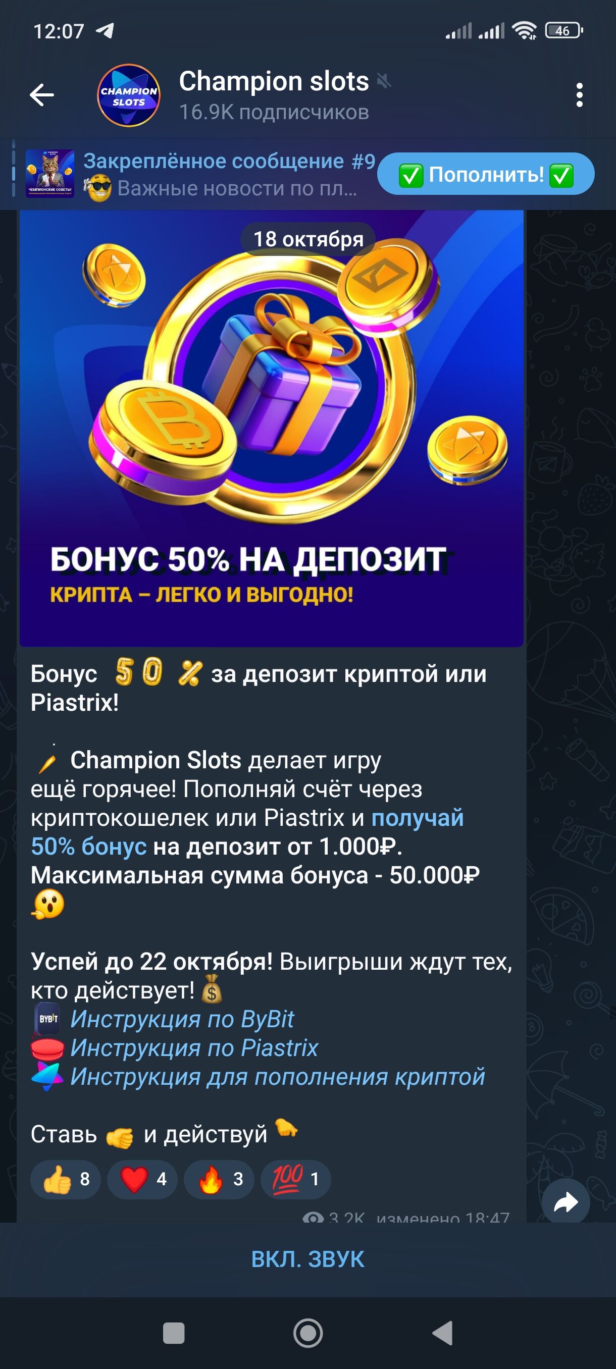 Вообще заметил, что чемпион стал забивать вообще на всё. Никто их не рекламирует, платить стали долго, с платежками беспредел уже несколько лет (ты сам это ощутил), бонусы всегда там были грабительские.