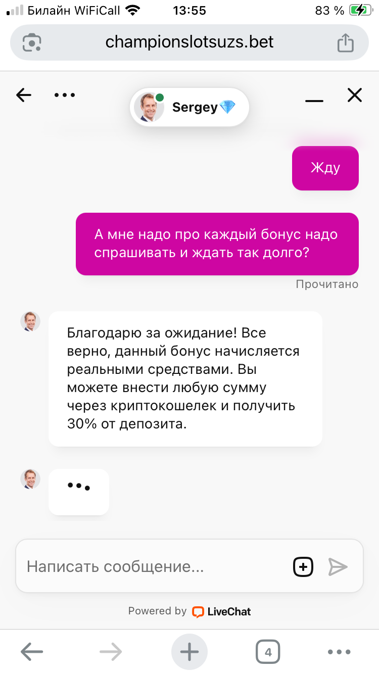 Вот только на жалобу ответили, решил проверить , изменилось чего-то или нет, спросил поддержку, про бонус! Говорит опять берите:))))))????????!!!!!! Ну не идиот ли!!