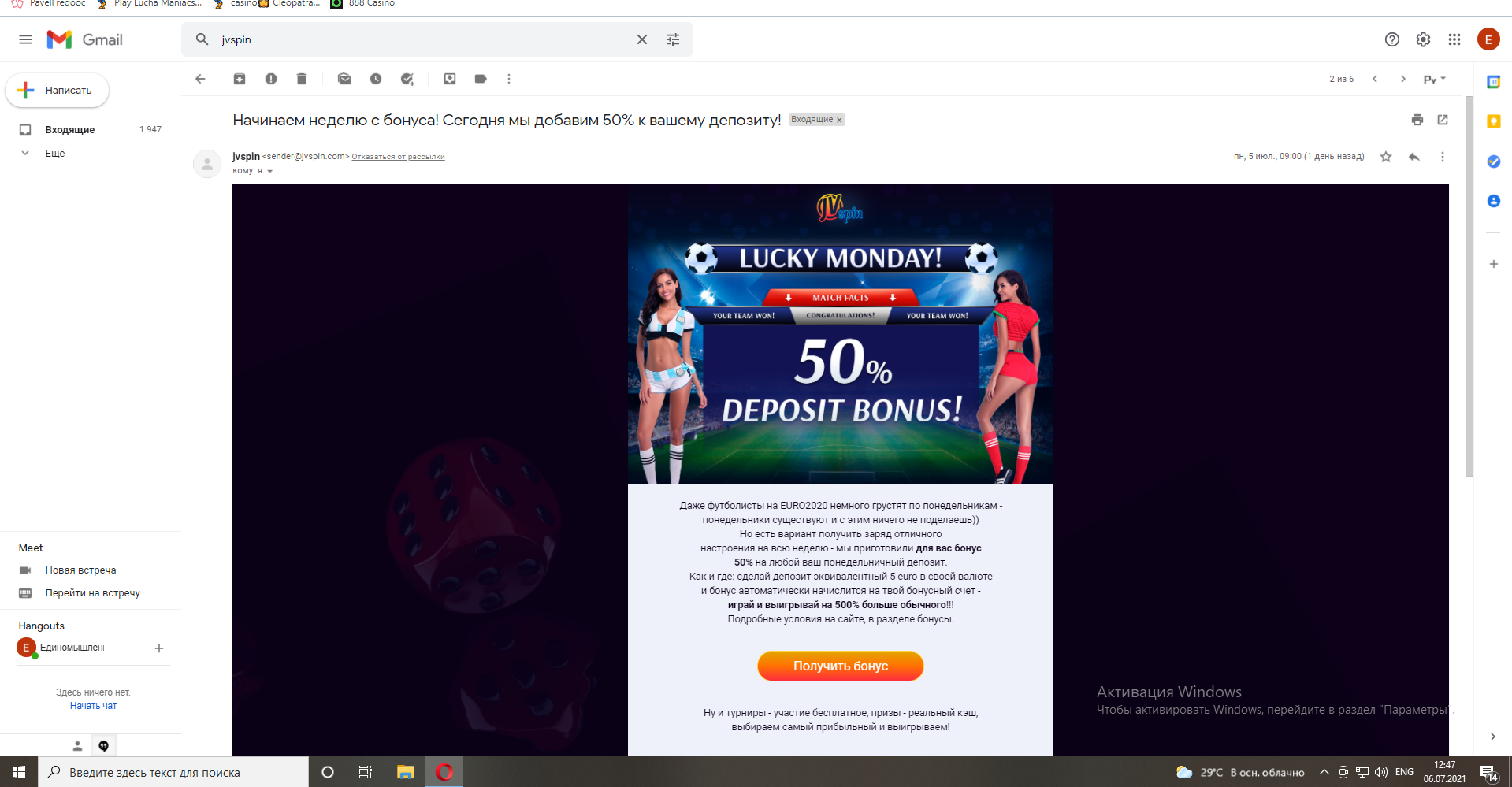 Добрый день. Я так понимаю речь идет о бонусе по понедельникам? Могли бы Вы подсказать, письмо было получено по почте? И каково его содержание было, можете заскринить, пожалуйста?
