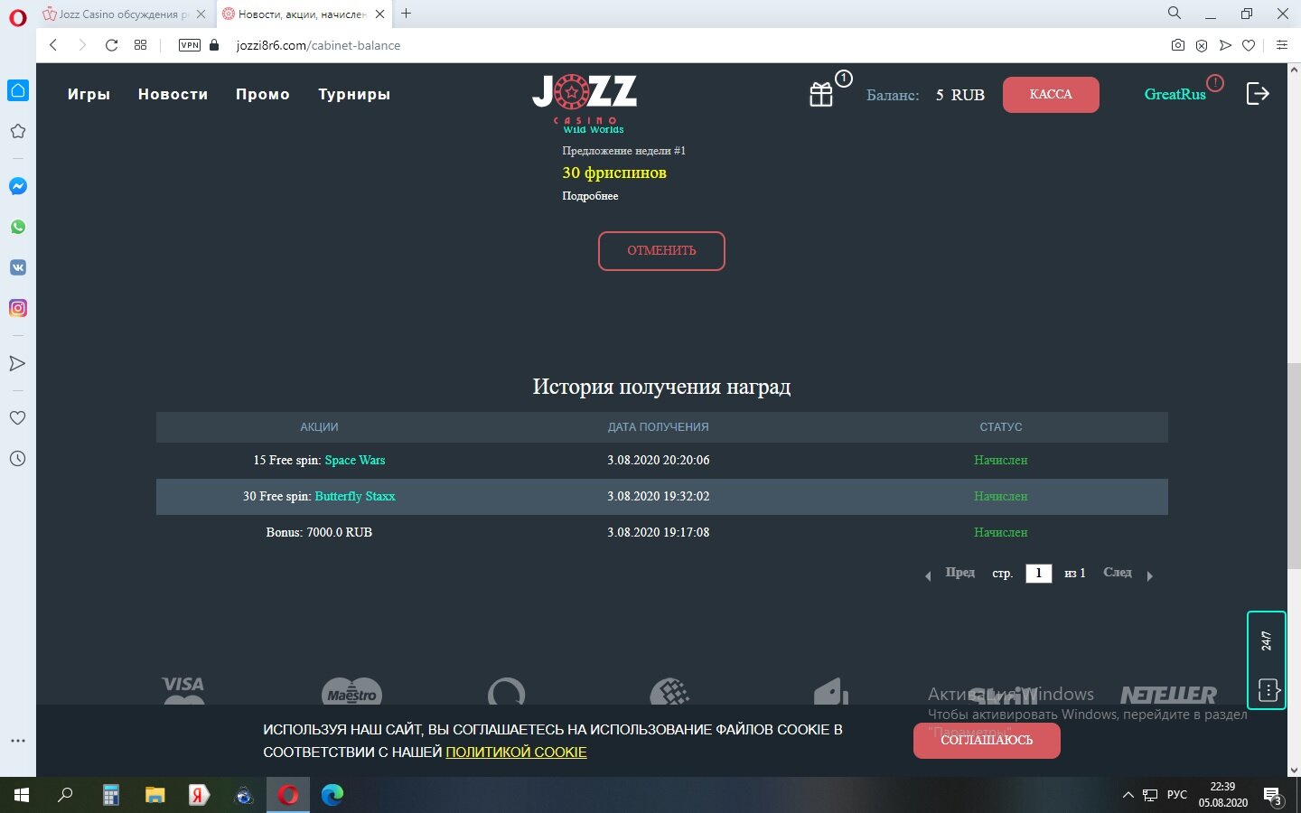 Я только за. Не люблю когда обманывают. Ну и собственно пруфы. История депозитов, где видно, что депозит был не один. История наград, где видно, что спины мне типа дали. Ну и история бонусов, где видно, что бонуса от спинов нет.