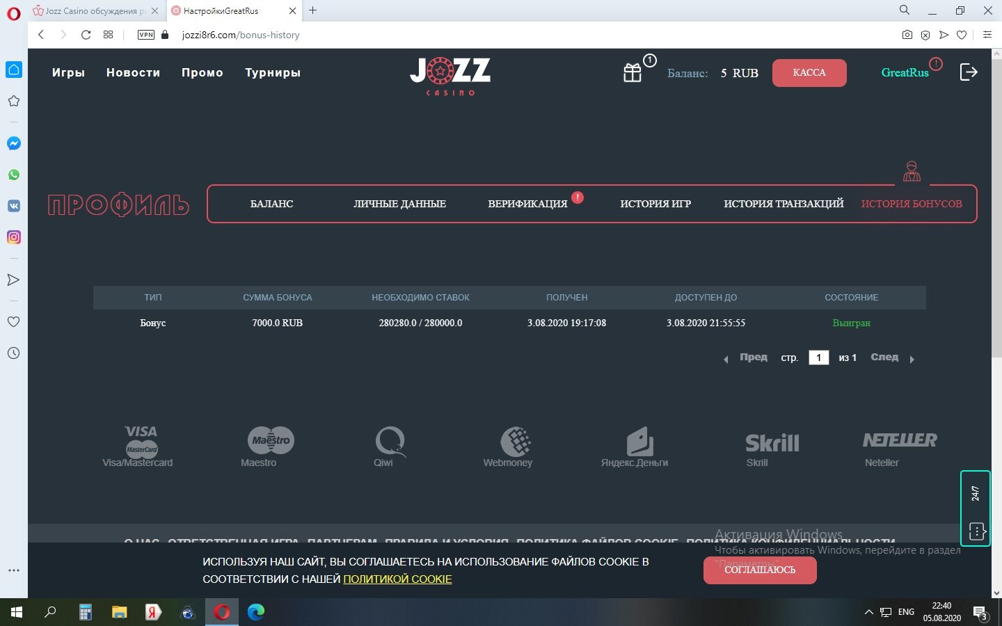 Бонус отмыт на 94+% — не волнует — бонус необходимо отмывать. Зачислить чтобы понятное дело он был так же слит — фиг вам.
