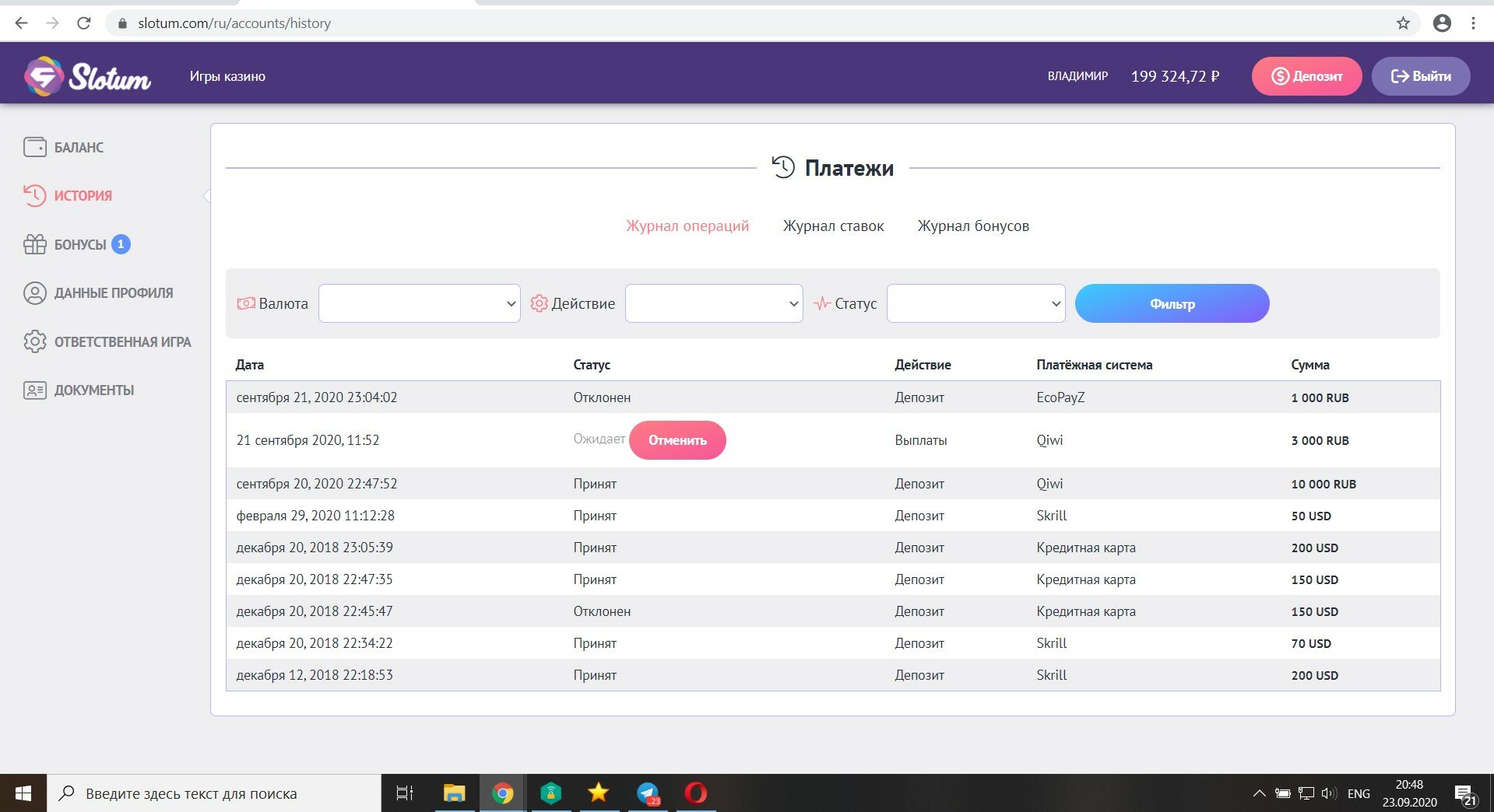 Казино slotum — списали деньги с баланса