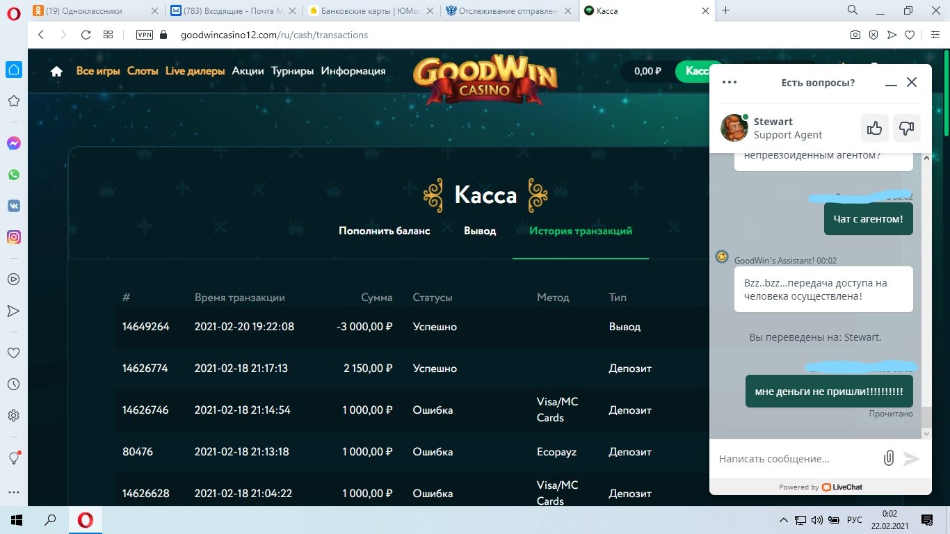 Казино Good win дешевая шарага, где то смошенничают, где то затянут. Представитель давно слился, кроме как защищать свое казино, ни на что не способен. Goodwin уже дал ранее понять, что репутация для них пустой звук. Данная жалоба премкнет просто ко всем остальным.