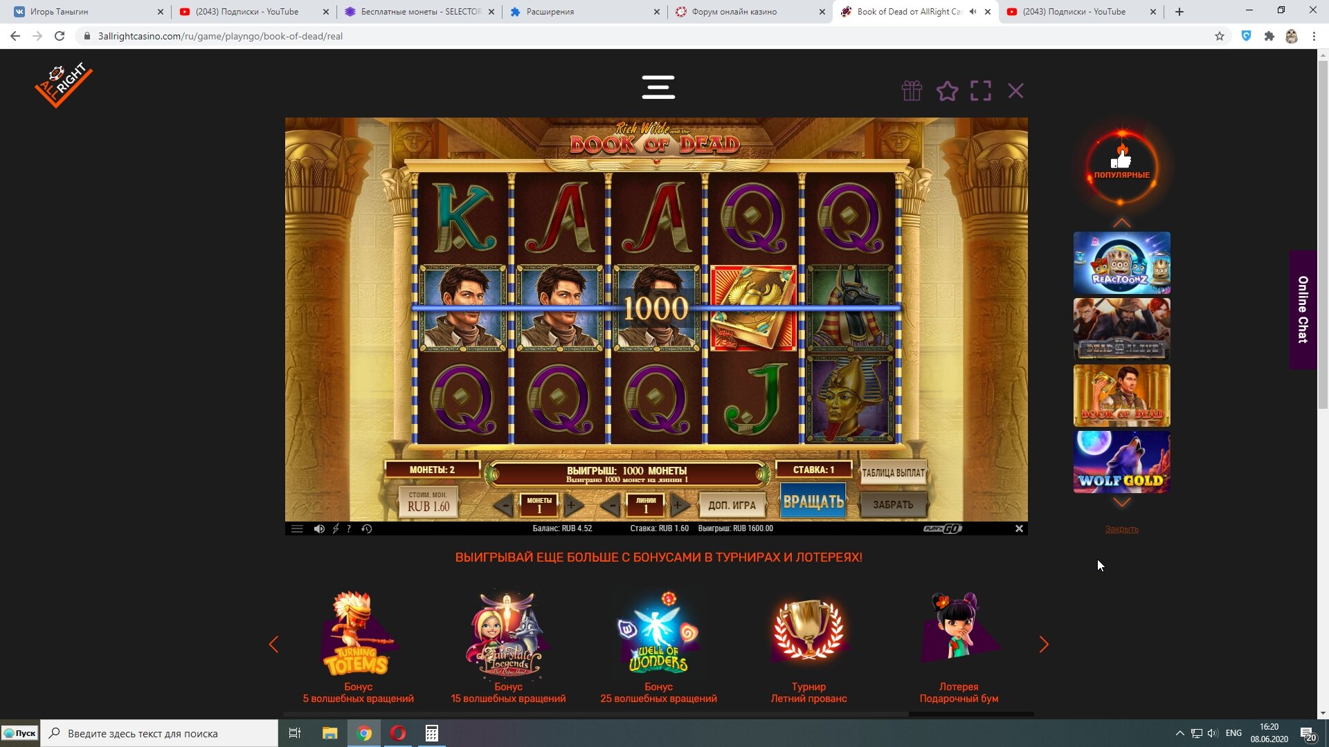 Так исторически сложилось, то что я за 3 года игры, тоже в плюсе почти во всех казино.