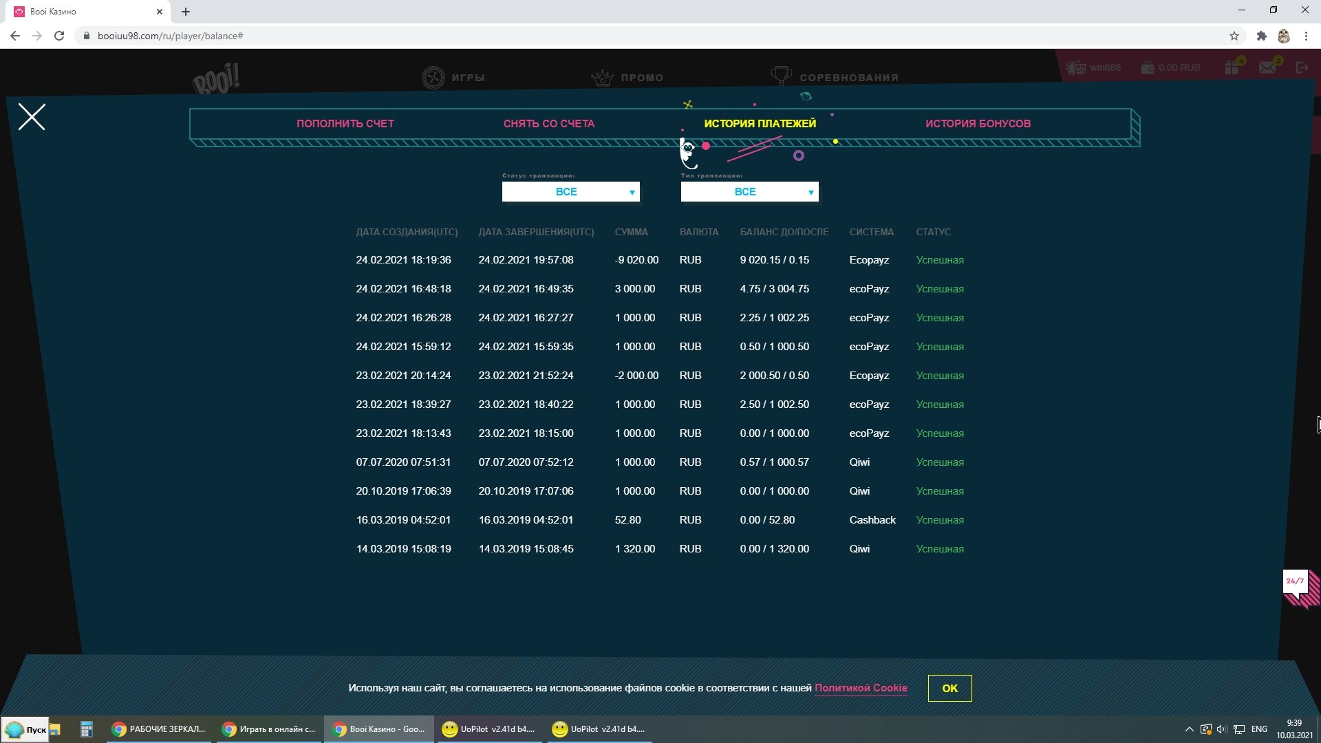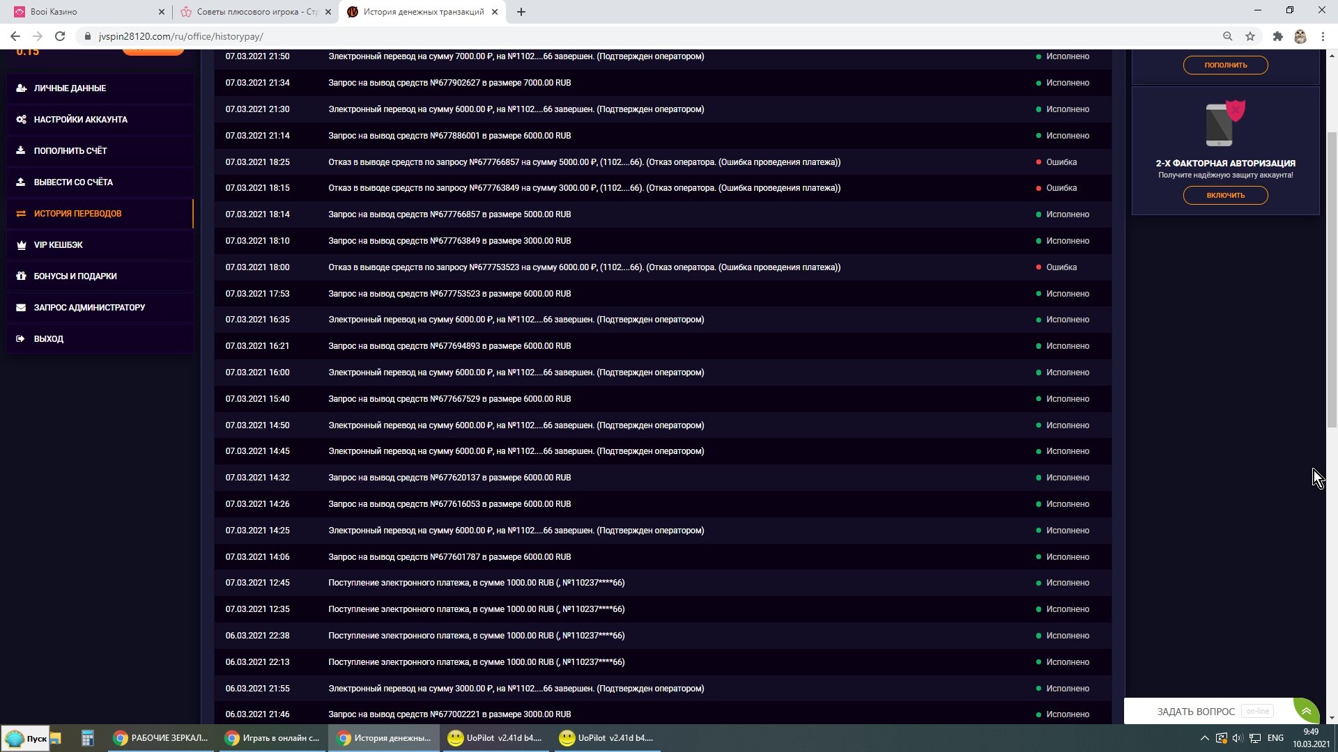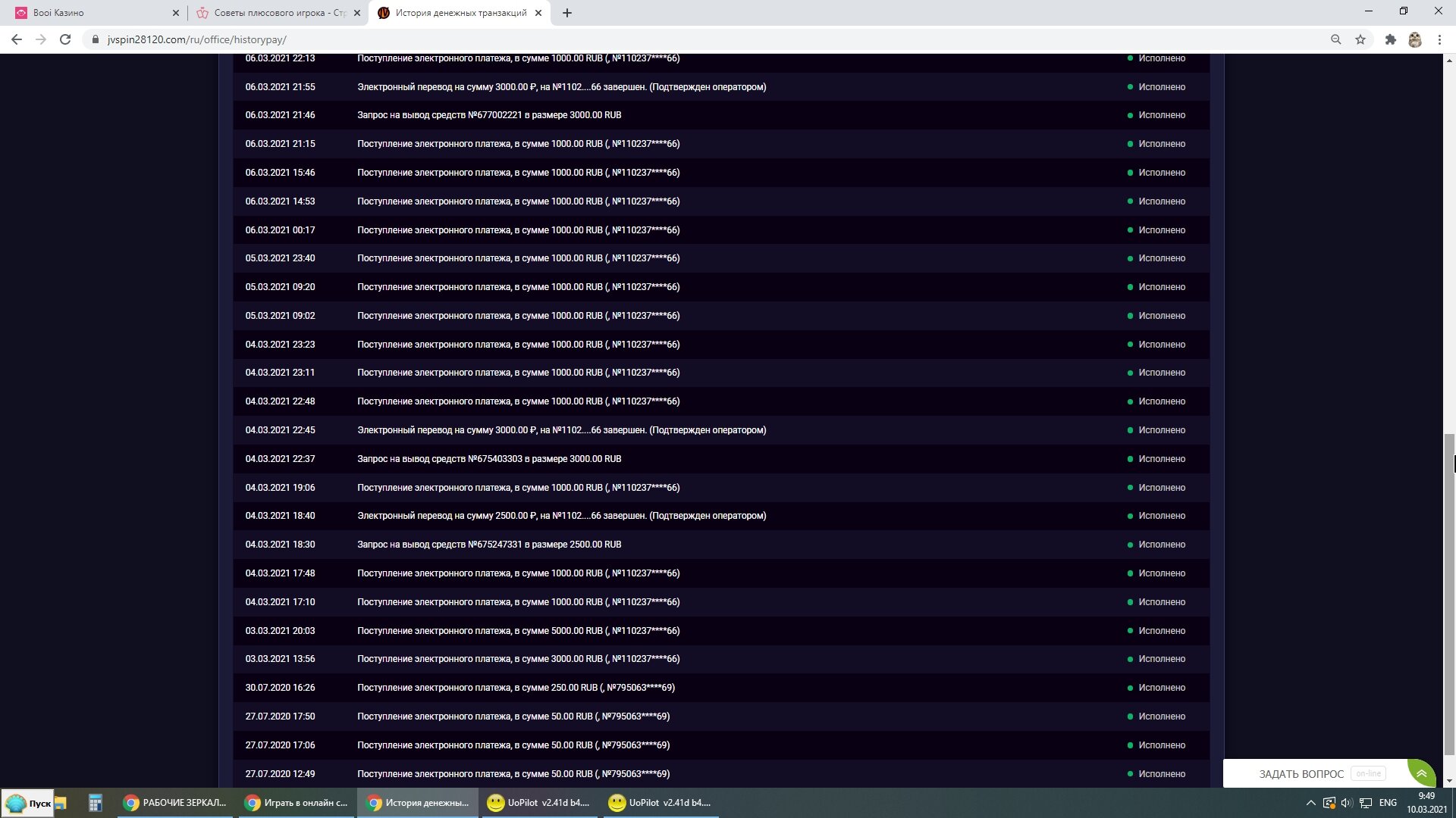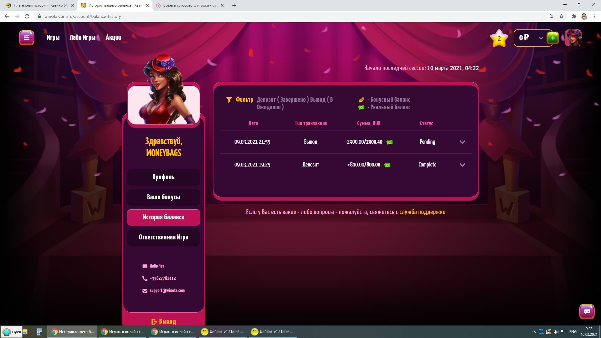 Как обещал показать 61 казино в плюс которое выиграл вчера Правда пока жду вывода Кстати отмыл оборот депозита на х3 с потерей 132 рубля Итоговый +2100