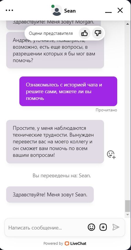 Меня как то, раза 4 с одного на другого переводили, сейчас писал, минут 30 решали проблему, по итогу сказал еще минут 7 понадобится и через 15 чат закрыли, клоуны