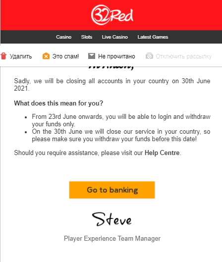 32RED прислало письмо что закрывает аккаунты.