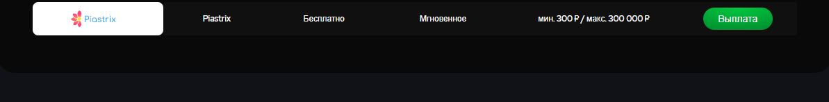 У казино очень приятное оформление в зелено-черных тонах, информация распределена органично, ничего не давит, все удобно читается и красиво смотрится. Тут однозначный плюс. Методов депозита на любой вкус: нетеллер, скрилл, карта, пиастрикс, даже дополнительно есть риппл, доджкоин и тезер в криптовалютах. Количество провайдеров крайне радует, кроме привычных amatic, play n go, endorphina и тд, можно найти и менее популярные merkur, bgaming, и даже spribe с его модным Aviator’ом.