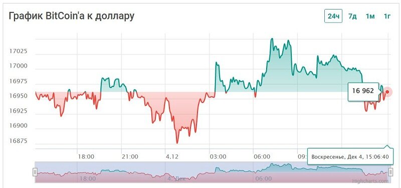 С 30 ноября биткоин торгуется вблизи отметки в $17 тыс., периодически превышая ее и вновь опускаясь чуть ниже. Вечером 1 декабря курс первой криптовалюты обновил локальный максимум на отметке в $17,3 тыс., по состоянию на 2 декабря 17:30 мск он составляет $16,9 тыс.