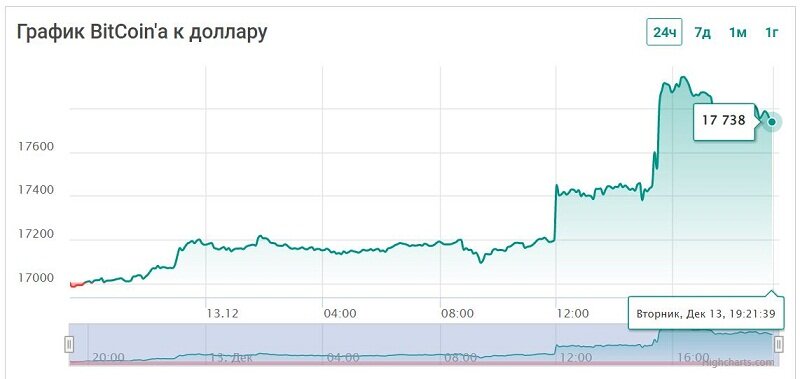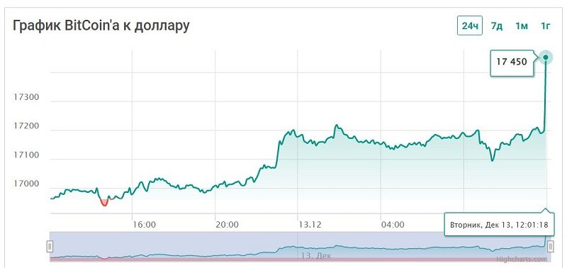 Накануне вечером биткоин (BTC) поднялся выше $17 000. В пятницу, 9 декабря, курс BTC укрепился до $17 210. Капитализация ведущей цифровой валюты на момент публикации данного обзора вплотную приближалась к $331 млрд.
