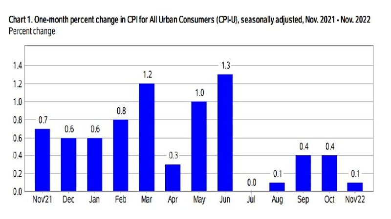 Инфляция в США составила 7,1% в ноябре после того, как месяцем ранее показатель составлял 7,7%. Прогноз на ноябрь был 7,3%. Новые данные показали, что базовая потребительская инфляция в США в ноябре была ниже ожиданий.