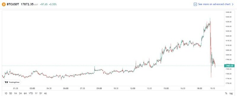 По новостям ФРС объявление, крупнейшая криптовалюта по рыночной капитализации, Bitcoin, снизился до 17,872 18,310 долларов с XNUMX XNUMX долларов, тогда как, Ethereum — вторая по величине криптовалюта упала в цене с $1350 до $1305.
