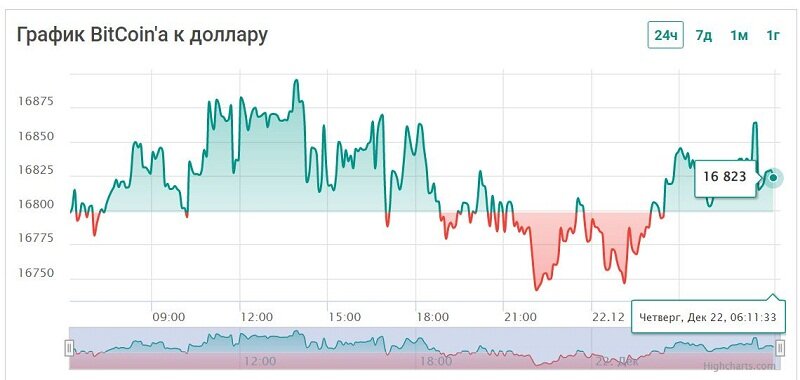 Биткоин (BTC), по данным ресурса CoinMarketCap, начал четверг с бокового движения. По состоянию на 05:43 (МСК), криптовалюта торгуется по $16 842 (1 токен в рублях – ₽1,202,684). Минимум биткоина за 24 часа – $16 755, максимум – $16 895.