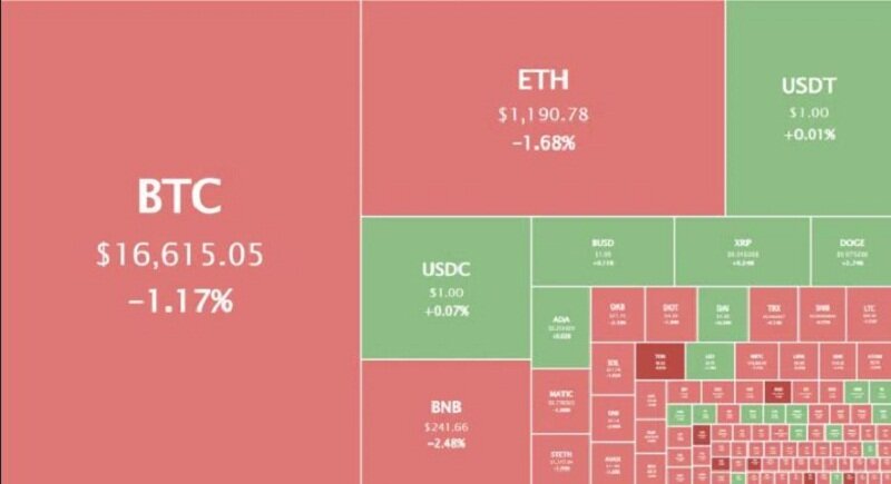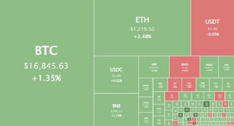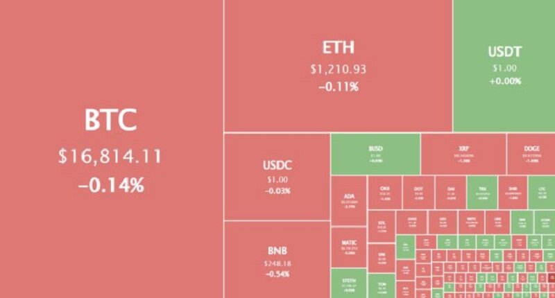 На момент написания Биткойн переходит из рук в руки по цене 16,804 XNUMX долларов.