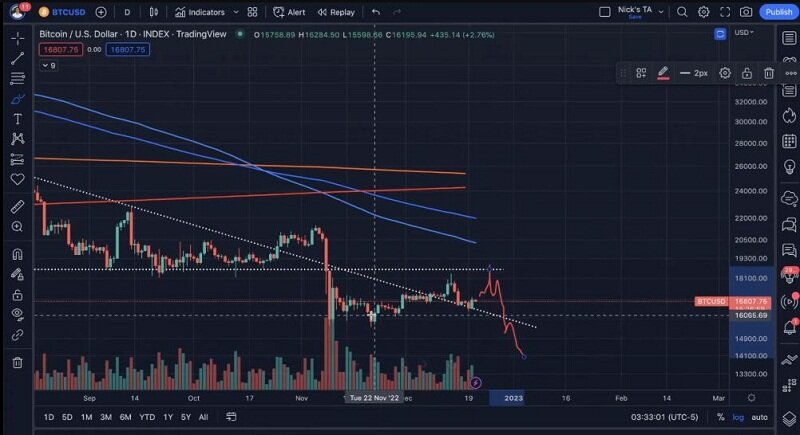 Мертен предвидит сценарий, при котором BTC ненадолго поднимется примерно до 18,000 13,000 долларов, а затем развернется и вызовет капитулянтское событие, которое приведет флагманский криптоактив к новым минимумам около XNUMX XNUMX долларов.