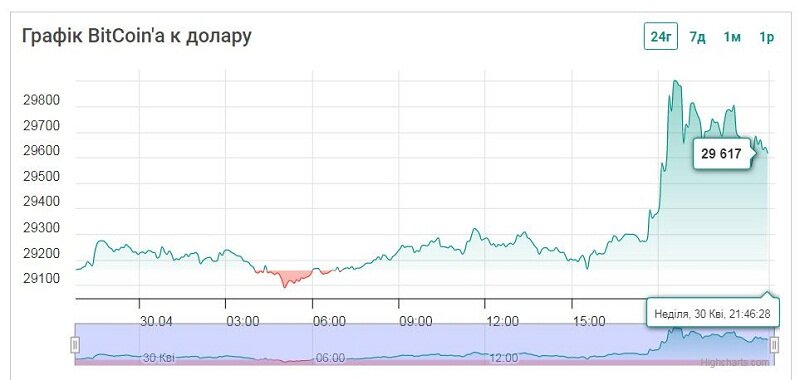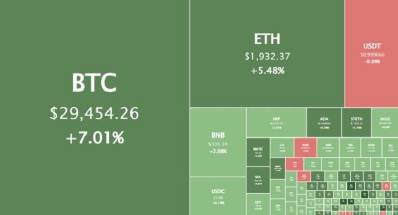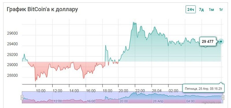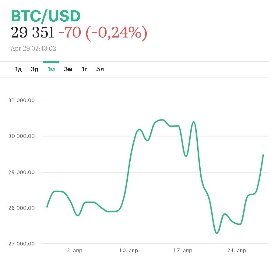 На момент написания в воскресенье ВТС торговался, по данным аналитического ресурса CoinMarketCap, в районе $29 394, с внутринедельным повышением на 6,65%.