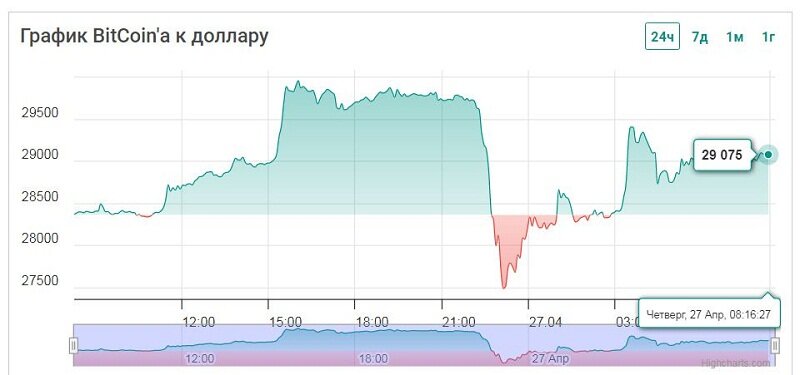 За последние сутки на разных новостях главная криптовалюта рынка — биткоин (BTC) — успела как вырасти, так и упасть, а диапазон движения коина составил $27 324-$29 995. В связи с разнонаправленными движениями монеты участники криптосообщества попытались предположить, куда же пойдет актив дальше. Большинство прогнозов в сети не исключают сценарий более глубокой коррекции.