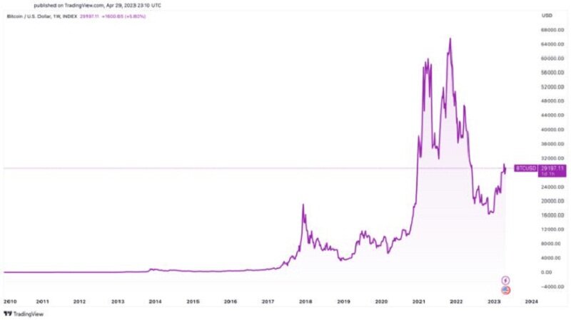 Биткойн, крупнейшая в мире криптовалюта, зарегистрировал массовый всплеск, когда финансовые регуляторы спешили спасти несколько терпящих крах банков. Цена биткойна выросла на 21% за последние 60 дней, в то время как ему удалось восстановить долгожданный уровень в 30 тысяч долларов.