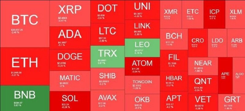 Однако цена BTC упала более чем на 2% за последние 24 часа. На момент публикации он торгуется по средней цене 28 478 долларов.