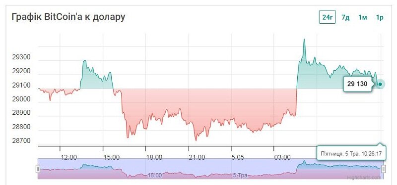 Текущий курс биткоина к доллару — $29,418.00