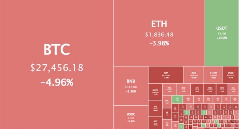 Цена биткойна потеряла 4.2% за прошедшие выходные и снова упала до 28,000 6 долларов. Криптовалютный рынок в целом также постоянно находится в минусе. Вторая по величине криптовалюта по рыночной капитализации, Ethereum, с пятницы упала на XNUMX%.