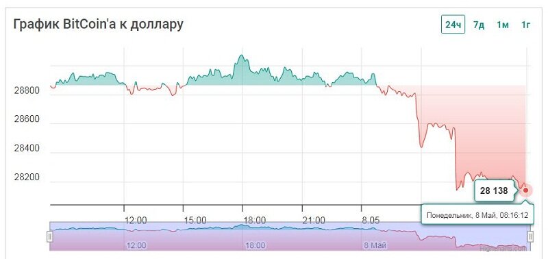 Текущий курс биткоина к доллару — $28,731.00