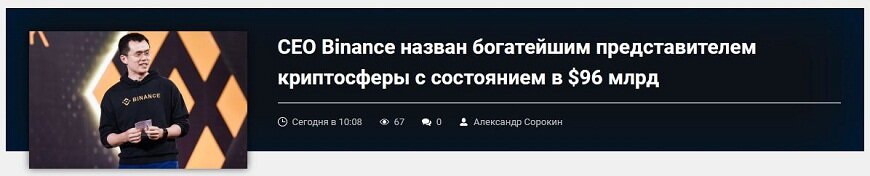 Состояние основателя биржи Binance Чанпена Чжао, по оценкам Bloomberg, составляет $96 млрд, что делает его богатейшим представителем сферы криптовалют. Чжао уже обошел богатейшего человека Азии Мукеша Амбани и может занять строчки рядом с Уорреном Баффеттом и Марком Цукербергом в индексе миллиардеров Bloomberg.