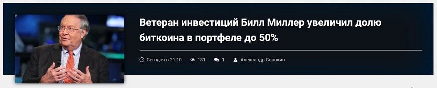 Миллер купил первые биткоины при курсе около $200 в 2014 году и постепенно добавлял к позиции по мере приближения к $500, однако затем оставил инвестиции в криптовалюту на несколько лет. В прошлом году Миллер снова начал вкладывать в биткоин, когда его курс откатился от $66 000 к $30 000.