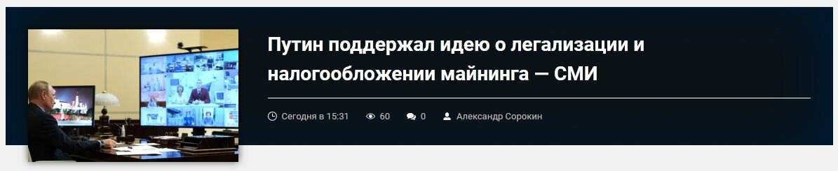 По их словам, Путин поддержал идею легализации майнинга в регионах с избыточным электричеством, включая Иркутскую область, Красноярский край и Карелию.