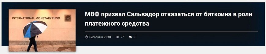 Международный валютный фонд опубликовал итоги консультаций своего исполнительного совета с Сальвадором по поводу признания биткоина платежным средством.