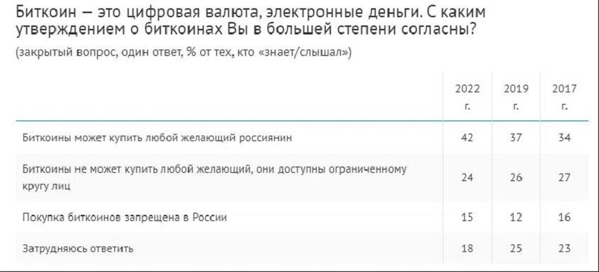 Более трети россиян высказались за полный запрет биткоина в стране, выяснили в ходе опроса аналитики ВЦИОМ