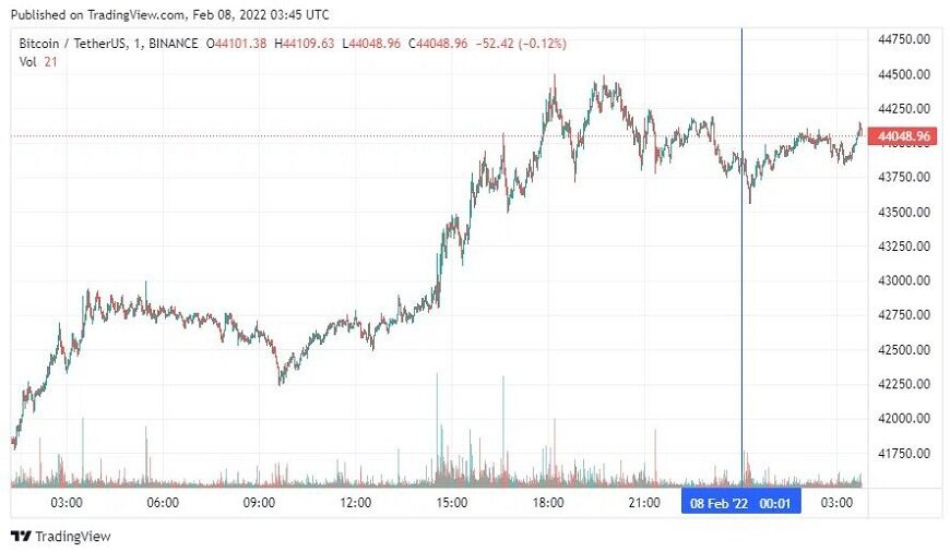 Традиционно, начало года оказалось провальным для крипторынка: 24 января биткоин опустился к летнему минимуму в $33,4 тыс. Однако, также традиционно, с начала февраля крипторынок снова вернулся к росту, и стоимость BTC быстро превысила отметку в $40 тыс. Уже восьмого февраля курс биткоина доходил до $45,2 тыс., а по состоянию на 23:00 этого же дня монету торгуют по $44,00 тыс.