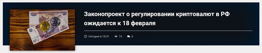 20 января ЦБ опубликовал доклад для общественных обсуждений, в котором предложил запретить в России выпуск, обращение и обмен криптовалют, а также организацию этих операций. Регулятор также считает необходимым запретить майнинг цифровых активов и начать мониторить вложения россиян в криптовалюту на зарубежных торговых платформах.