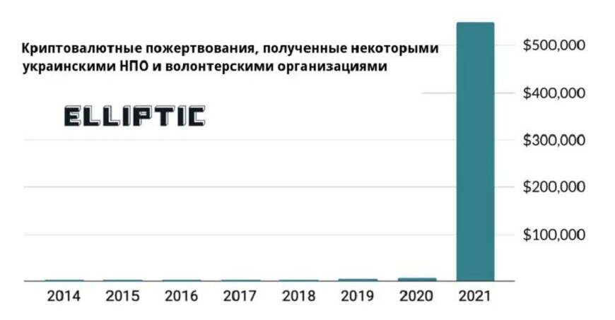 Эксперты выяснили, что в 2021 году объем криптовалютного финансирования в таких организациях вырос более чем на 900%. Кроме того, они подсчитали, что на криптовалютных кошельках, принадлежащих таким НПО и волонтерским группам скопились средства на сумму $570 000.