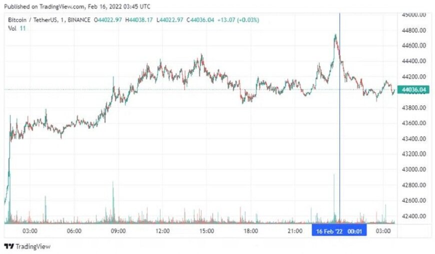 Заявление Министерства обороны России о «возвращении с учений в пункты базирования Западного и Южного военных округов» появилось утром 15 февраля. В этот же день курс биткоина продемонстрировал небольшой рост, за последние сутки монета подорожала на 4,2%.
