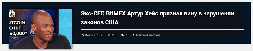 Минюст и Комиссия по срочной биржевой торговле (CFTC) предъявили обвинения основателям BitMEX осенью 2020 года, после чего Хейс ушел с должности генерального директора биржи. За урегулирование претензий при новом руководстве BitMEX в прошлом году заплатила $100 млн штрафа.