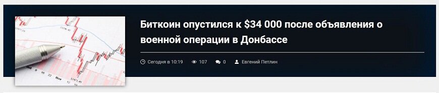 Стоимость биткоина резко снизилась после того, как президент России Владимир Путин объявил о военной операции в Донбассе. В видеообращении президент Украины Владимир Зеленский сообщил, что страна вводит военное положение.
