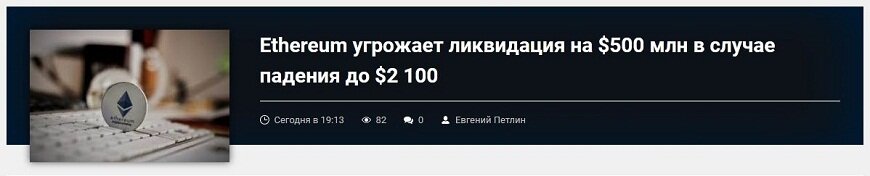 Автоматическая ликвидация позиции на $500 млн в Ethereum может произойти в случае падения цены криптовалюты до уровня $2 100, обращает внимание The Block.