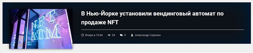 Стартап Neon по-своему подошел к сближению невзаимозаменяемых токенов с реальным миром, установив вендинговый автомат по продаже NFT в финансовом квартале Нью-Йорка неподалеку от Уолл-стрит. В качестве преимущества такого подхода создатели называют возможность покупать NFT без необходимости осваивать криптовалюты.