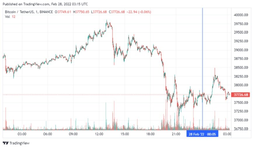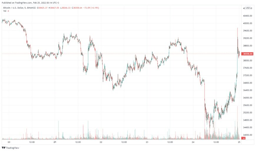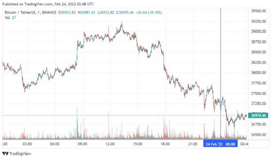 Биткоин продолжил снижение этим утром вместе с волатильностью на более широком финансовом рынке после объявления президента РФ Владимира Путина о начале специальной военной операции в Донбассе.