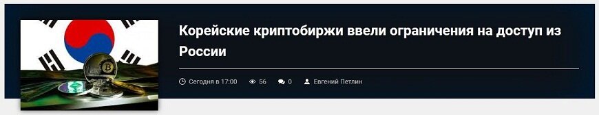 Биржа Gopax в среду заморозила около 20 аккаунтов, зарегистрированных российскими пользователями, и ограничила доступ с IP-адресов РФ. Bithumb и Korbit ввели аналогичные меры в четверг.
